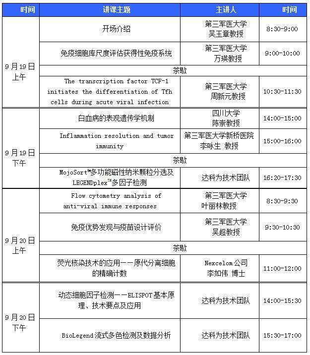 繼達科為生物第三屆流式培訓班北京站在北大醫學部成功舉辦后,客戶反響熱烈,反饋良好。鑒于此,第三屆流式培訓班重慶分站將于9月19-22日在重慶第三軍醫大學拉開帷幕,為期4天。
