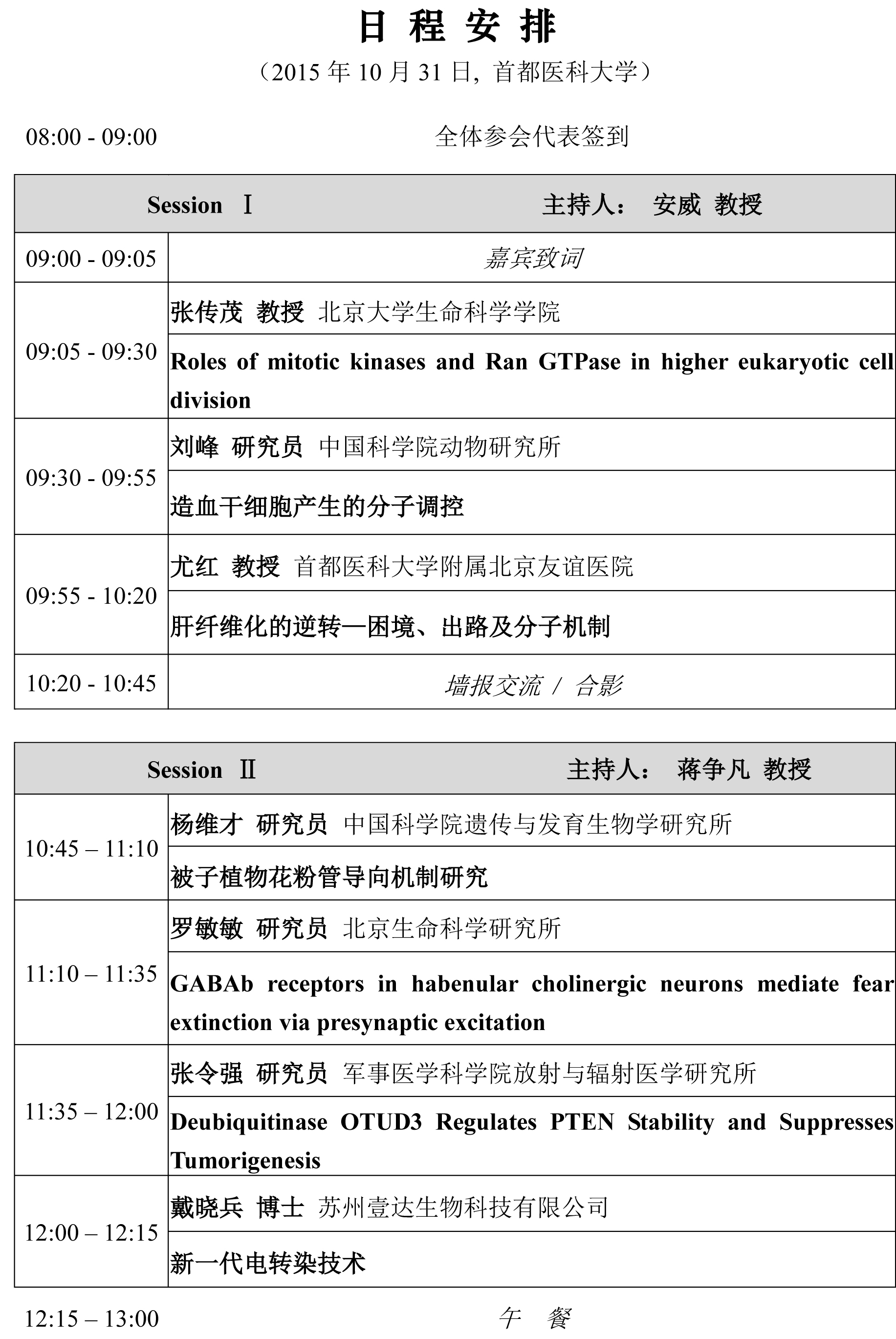 為了促進細胞生物學領域研究人員的交流與合作,由北京細胞生物學會主辦、首都醫科大學承辦的北京細胞生物學會2015年學術大會將于20151031日在北京首都醫科大學舉行,會期1天。