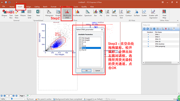 演示內容:細胞周期數據的分析,關于細胞周期各個參數的調用,統計學圖表的建立