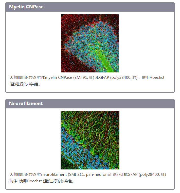 SMI?克隆號(hào)系列抗體是BioLegend 旗下品牌 Covance非常重要而知名的產(chǎn)品線,被業(yè)內(nèi)譽(yù)為研究神經(jīng)細(xì)胞特異marker的金標(biāo)準(zhǔn)。