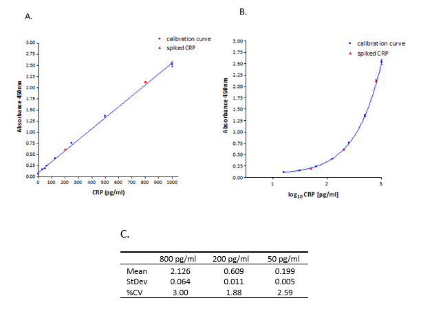 結果:對于所有稀釋度,計算的CRP量在實際值的10%以內。