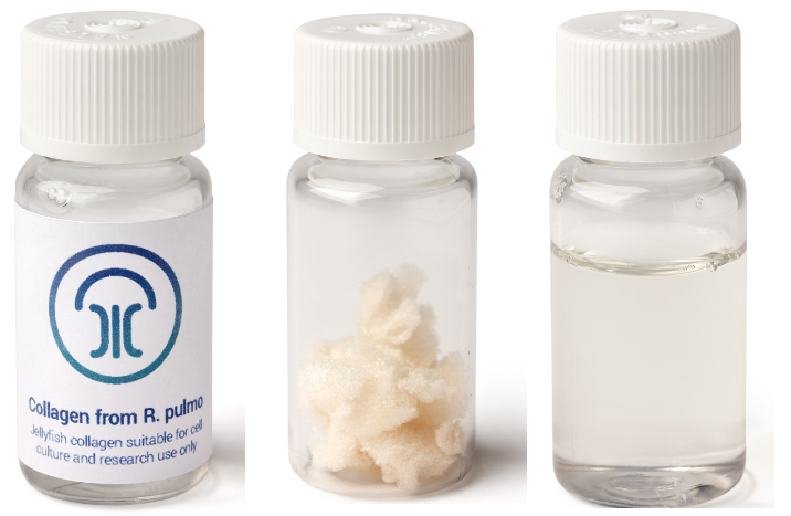 水母膠原蛋白位于膠原蛋白進化樹的根部,和大多數細胞兼容。Jellagen的Collagen是源自水母的功能性非哺乳動物膠原蛋白產品,良好的生物兼容性,為細胞培養、創建3D支架和再生醫學研究市場提供高性價比的膠原蛋白產品。