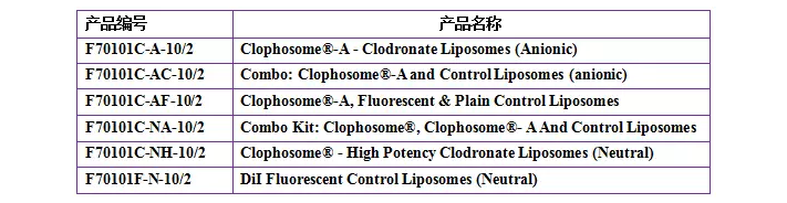 Clophosome?系列產品提供多種空白對照,各種組合包裝,便于選擇,相關產品信息如下: