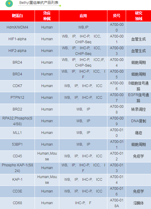 Bethyl特色重組單抗產品數據展示