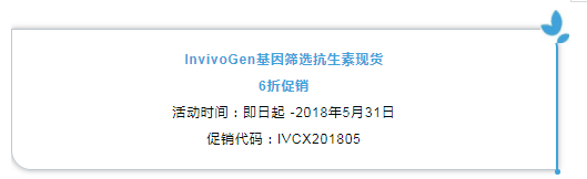 達(dá)科為生物是InvivoGen公司在中國(guó)的一級(jí)代理,并且和InvivoGen一直都有良好的合作,達(dá)科為準(zhǔn)備了大量InvivoGen篩選抗生素現(xiàn)貨,即日起篩選抗生素下列現(xiàn)貨參加6折促銷活動(dòng):