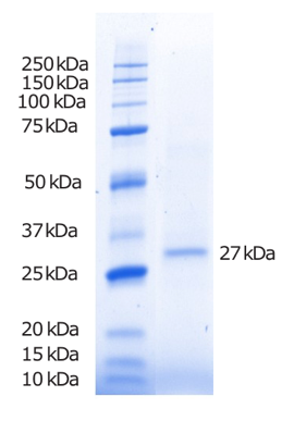 STING通過胞漿區域與CDNs結合。InvivoGen提供的重組STING蛋白對應可溶性的胞漿結構域(aa 137-379)R232突變型,是普遍的人源STING蛋白的同型。這個27kDa的重組蛋白產生自哺乳動物中國倉鼠卵巢細胞系(CHO),通過親和層析純化,不帶標簽,能夠被市面上的商品化人源STING抗體所識別。
