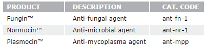 InvivoGen的篩選抗生素可與其他篩選抗生素或與細胞培養過程中預防支原體,細菌,真菌污染的抗微生物抗生素聯合使用。有不同的規格可供選擇。