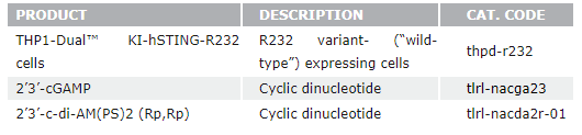 InvivoGen提供一系列STING篩選服務的選擇,用于鑒定激活或抑制一些STING突變體的分子。欲知更多信息請聯系我們。