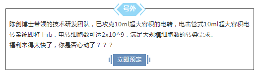 現(xiàn)在,在電轉(zhuǎn)這一細分的細胞生物學(xué)高科技領(lǐng)域,中國人的科研力量已經(jīng)出現(xiàn)!已經(jīng)落地實現(xiàn)商業(yè)化。已經(jīng)加入激烈的市場競爭,正面挑戰(zhàn)amaxa技術(shù)!已經(jīng)在美國和中國多個重要科研院所(都是具有多臺amaxa設(shè)備,多年amaxa使用經(jīng)驗的實驗室)得以驗證,成功改寫了用戶的看法,實現(xiàn)了商業(yè)市場競爭的勝利。