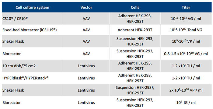 表1.Polyplus-transfection?提供一系列不同級別PEIpro?,滿足從工藝開發(fā)、臨床前、到臨床級別病毒載體的生產(chǎn)需求