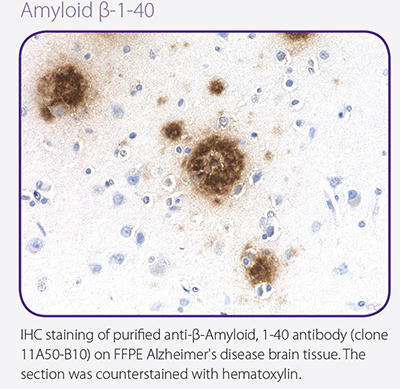 APP/Aβ抗體、β/γ分泌酶抗體、Tau抗體、α-Synuclein抗體、神經Marker抗體、神經絲L/M/H抗體、膠質細胞抗體、突觸前囊泡和突觸后抗體、GluA1/2和NMDA (GluN)受體抗體、自噬抗體、表位標簽抗體套裝。