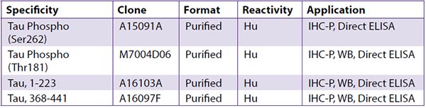 Tau蛋白抗體小樣套裝: