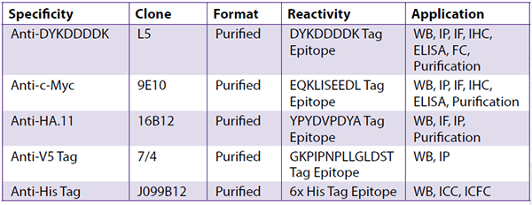 表位標簽抗體小樣套裝: