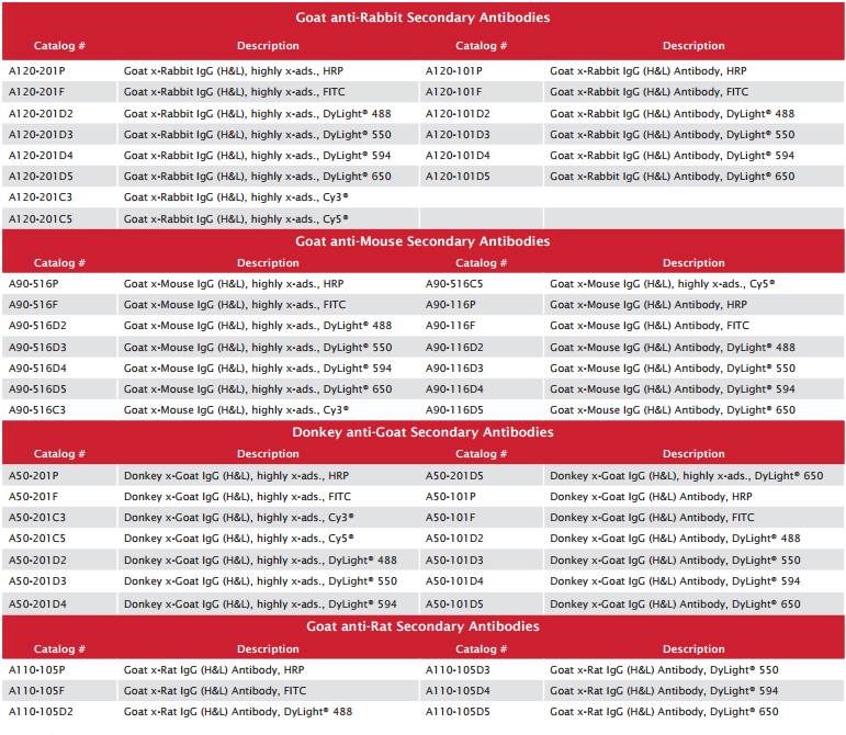 Bethyl優質二抗舉例:
