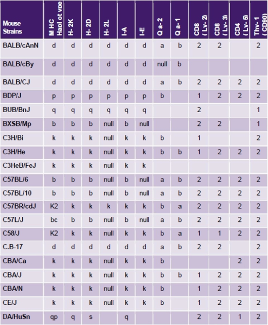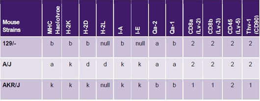 MHC分子具有高度多態性的特點,但是由于實驗室小鼠都是近交系小鼠,所以每一個品系的小鼠都具有獨特的 MHC 單倍型。不同小鼠品系的 MHC 單倍型用小寫字母(a、b、d、k、q、s等)進行命名區分,比如 BALB/c 小鼠的MHC單倍型為 H-2Kd、 H-2Dd、 H-2Ld、 I-A和 I-E