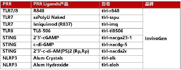 天然免疫專家InvivoGen可提供包括TLR7/8、RIG-I、炎癥小體NLRP3等一系列天然免疫通路的刺激劑/抑制劑、相關(guān)報告基因細(xì)胞和檢測試劑等。