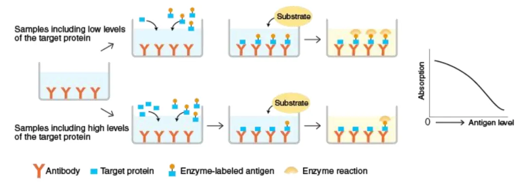 1、樣本中分析物水平較低可以使用哪些方法改進(jìn)檢測?通過增加洗滌次數(shù)和兩次洗滌之間的浸泡時間降低背景。控制測定精確度。例如,在移液時要更加小心和一致,使用干凈的紙巾拍板,以避免污染。增加孵育時間。但這通常也會增加背景,因此檢測靈敏度不一定會增加。如果可以的話,建議濃縮樣本。使用5-PL曲線擬合方法,更準(zhǔn)確地計算標(biāo)準(zhǔn)曲線下端的樣本濃度。在大多數(shù)情況下,樣本可能只含有非常低或無法檢測到的分析物水平。這時無論如何操作和測定,仍然無法檢測到準(zhǔn)確濃度。2、包板應(yīng)如何存放?如果包被完抗體的板不能立即使用,應(yīng)將其密封并在4°C儲存過夜。3、為什么使用同一克隆號的捕獲抗體和檢測抗體建立ELISA實(shí)驗(yàn)沒有成功?如果使用相同的克隆抗體進(jìn)行檢測和捕獲,則抗原表位可能已經(jīng)被其中一種抗體占據(jù)并抑制另一抗體結(jié)合。建議捕獲和檢測抗體選擇不同的克隆號。4、應(yīng)該使用哪種包被緩沖液?一般來說,建議使用PBS(pH 7.4)或碳酸鹽緩沖液(pH 9.5)。確切的包被緩沖液可能取決于要檢測的細(xì)胞因子。5、為什么細(xì)胞因子流式染色與ELISA測定之間沒有良好的相關(guān)性?流式細(xì)胞術(shù)檢測的胞內(nèi)細(xì)胞因子代表檢測時的陽性細(xì)胞比例,ELISA代表細(xì)胞因子隨時間的積累量??赡苌倭康年栃约?xì)胞在一段時間之后會分泌大量的細(xì)胞因子于培養(yǎng)上清中,導(dǎo)致ELISA的結(jié)果與胞內(nèi)因子染色的結(jié)果不一致6、可以使用細(xì)胞培養(yǎng)板進(jìn)行ELISA實(shí)驗(yàn)嗎?不可以。細(xì)胞培養(yǎng)板設(shè)計用于達(dá)到細(xì)胞培養(yǎng)目的,通常不具有高蛋白結(jié)合能力。對于ELISA,建議使用具有高蛋白結(jié)合能力的板,例如 Nunc Maxisorp?酶標(biāo)板。7、血清等樣本可以重復(fù)使用嗎?不建議重復(fù)使用樣本。為了獲得準(zhǔn)確的結(jié)果,樣本應(yīng)分裝儲存,僅供一次性使用。如果重復(fù)使用樣本,需要進(jìn)行額外的驗(yàn)證實(shí)驗(yàn),以確保實(shí)驗(yàn)準(zhǔn)確性。8、在什么步驟中,可以暫停ELISA實(shí)驗(yàn)?可以冷凍板子以備后用嗎?最好遵循說明書操作,沒有任何可以暫停實(shí)驗(yàn)的步驟。但是,如果一定需要暫停實(shí)驗(yàn),建議在封閉步驟(包被捕獲抗體后)??梢栽诳字屑尤?00 μL封閉緩沖液,并將板在4°C過夜(信號損失最小或沒有)或在-20°C冷凍幾天(可能會對信號產(chǎn)生一些影響)。不建議在第一步進(jìn)行(在4°C用捕獲抗體包被超過16-20小時),因?yàn)榭赡軙?dǎo)致高背景。9、包被捕獲抗體可以超過過夜的時間嗎?通常來說,建議在4°C包被16-20小時。較長的孵育時間可能會增加與板結(jié)合的捕獲抗體量,會增加背景。10、培養(yǎng)基中的酚紅會干擾ELISA測定嗎?不會,培養(yǎng)基中酚紅的吸光度可以在計算時,通過扣除空白孔中本底的吸光度而消去,因此不會干擾ELISA測定的讀數(shù)。11、對于一些ELISA試劑盒,為什么血清樣本需要稀釋?血清樣本稀釋可以盡量減少樣本和標(biāo)準(zhǔn)品之間的基質(zhì)差異,以獲得更加準(zhǔn)確的結(jié)果。12、如何提高ELISA檢測獲得更好的信號和靈敏度?增加孵育時間,但這也可能會增加檢測的背景,同時不改變靈敏度。在孵育步驟中搖動板子。確保標(biāo)準(zhǔn)品在使用前完全溶解。在兩次洗滌之間增加浸泡時間,以進(jìn)一步降低背景。如果可以的話,在450-570 nm處讀板以減去本底。通過控制移液誤差或使用更大體積的洗滌緩沖液洗滌來改善CV值。使用5-PL或4-PL曲線擬合方法,而不是線性曲線擬合。